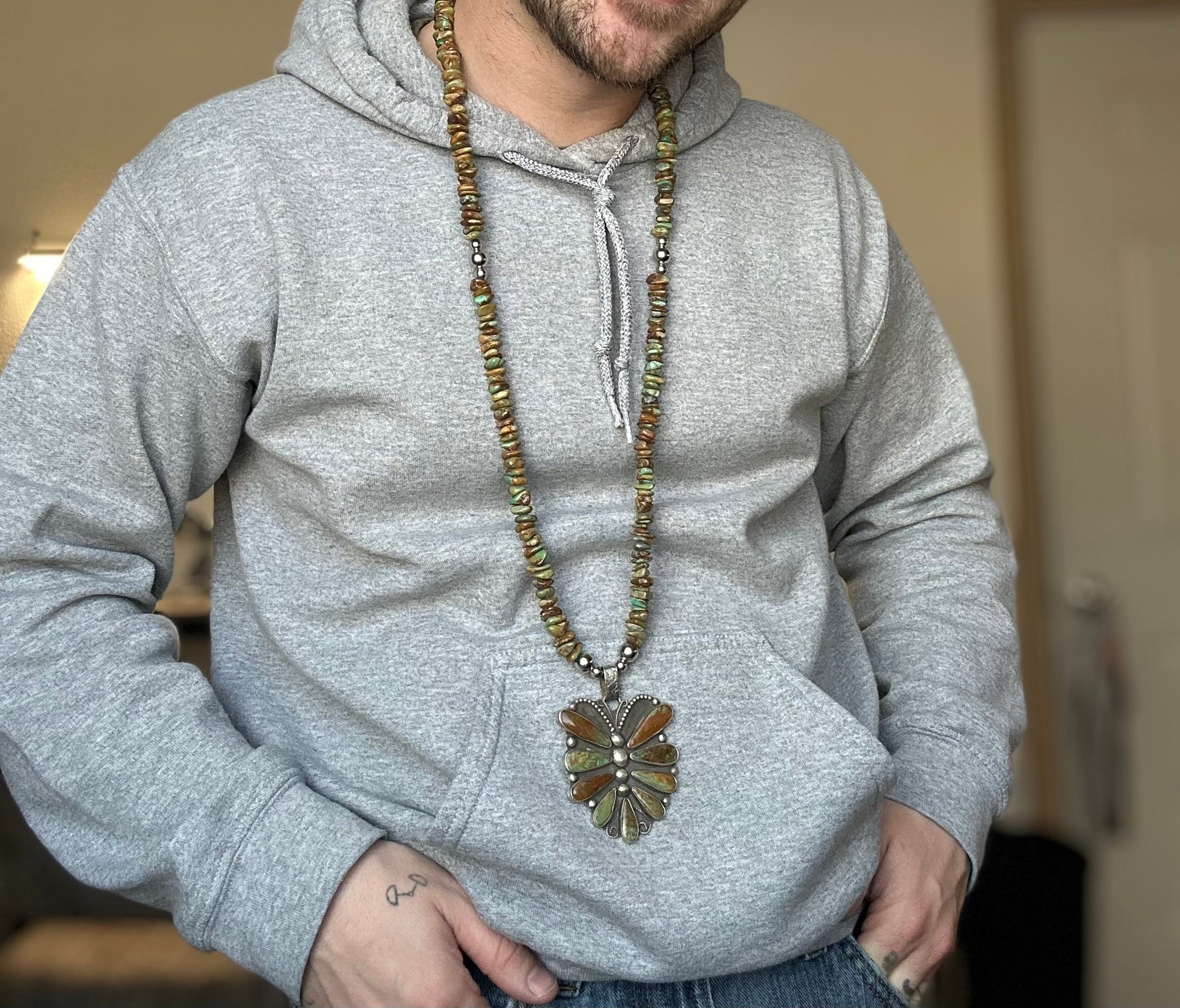Tyrone Turquoise butterfly with genuine green turquoise beads